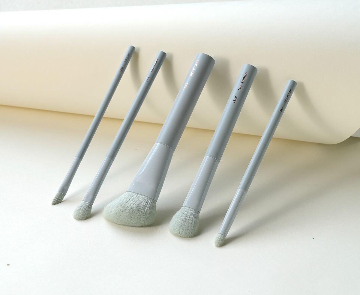 There are five essential brushes in the 13LY Collection, each designed to cover a wide range of makeup applications. While each brush is versatile, having multiple brushes can be beneficial for using different products simultaneously without waiting for cleaning.